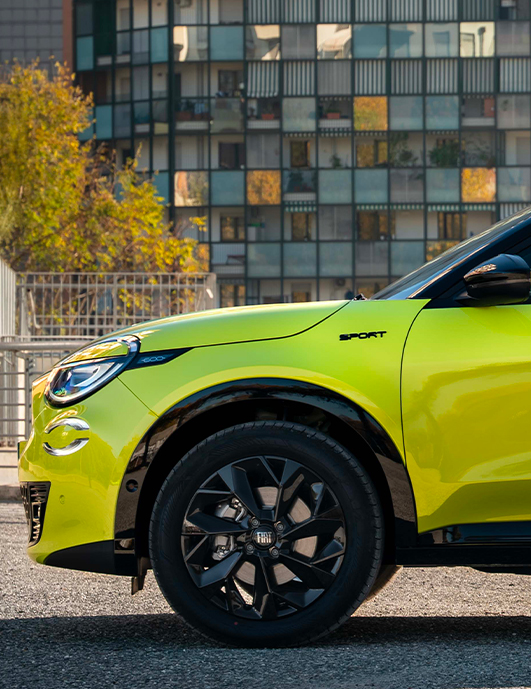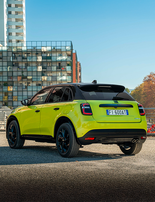 Der FIAT 600 Sport vereint Stärke und Eleganz. Jedes Detail ist so gestaltet, dass Sportlichkeit auf unverwechselbares Design und Raffinesse trifft, angefangen bei den 18"-Leichtmetallfelgen.