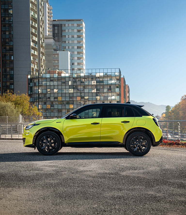 Der FIAT 600 Sport bietet Ihnen exklusives Design, moderne Hybridtechnologie und ein sportlich abgestimmtes Erscheinungsbild. Mit 145 PS Systemleistung, markanten 18"-Sportfelgen und schwarzen Designelementen setzt er ein klares Statement – im urbanen Alltag genauso wie auf längeren Fahrten.