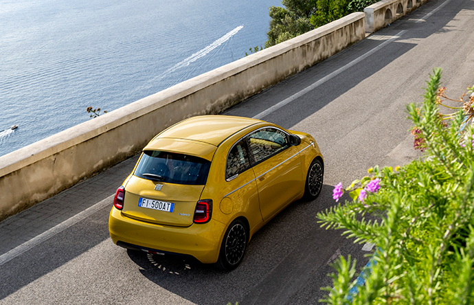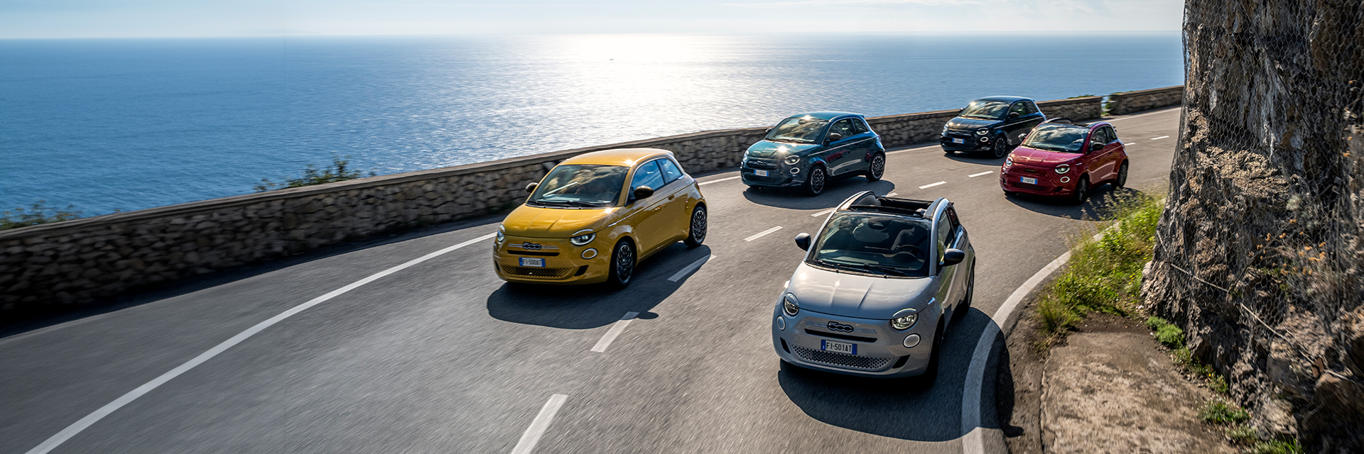 Elektro-Cabrio, erhältlich als 4-Sitzer. Sein brandneues Verdeck mit FIAT Monogramm setzt einen stilvollen Akzent als Tribut an die 120-jährige Geschichte der Marke. Erhältlich mit Elektro- oder Hybridmotor.