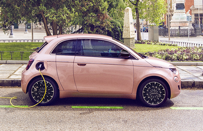 Der FIAT 500 Elektro vereint ikonisches italienisches Design mit einem innovativen Elektromotor. Agil, effizient und voller Persönlichkeit ist er das ideale Stadtauto. Steig einfach in den Fiat 500 Elektro ein und lasse dich von einem unvergesslichen Fahrerlebnis begeistern. Für die Stadt gemacht: Innerorts reicht die maximale Reichweite deines vollelektrischen Kleinwagens bis zu 460 km* dank des Sherpa Modus. Der Fiat 500 Elektro kann schnell mit einer hohen Leistung von bis zu 85 kW aufgeladen werden: bis zu 50 km mit einer Ladung von etwa 5 Minuten oder bis zu 80% der vollen Batterieladung in etwa 35 Minuten.