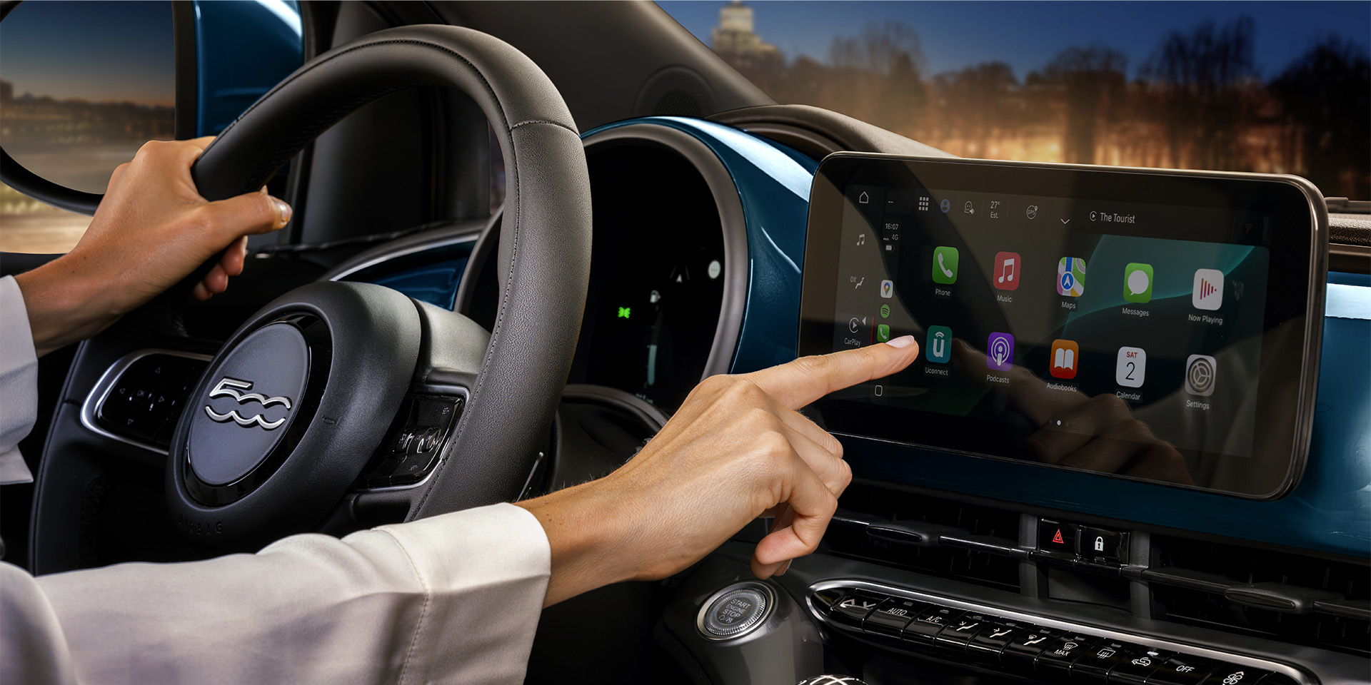 Nouvelle Fiat 500 Hybrid Torino Launch Edition et sa technologie intuitive qui incarne l'âme d'une icône tout en allant de l'avant avec audace. L'écran tactile haute résolution 10,25" et les 4 haut-parleurs offrent des images nettes et un son immersif, transformant chaque trajet en un moment de plaisir. Et grâce à Apple CarPlay et Android Auto sans fil, vous restez connecté en toute transparence.