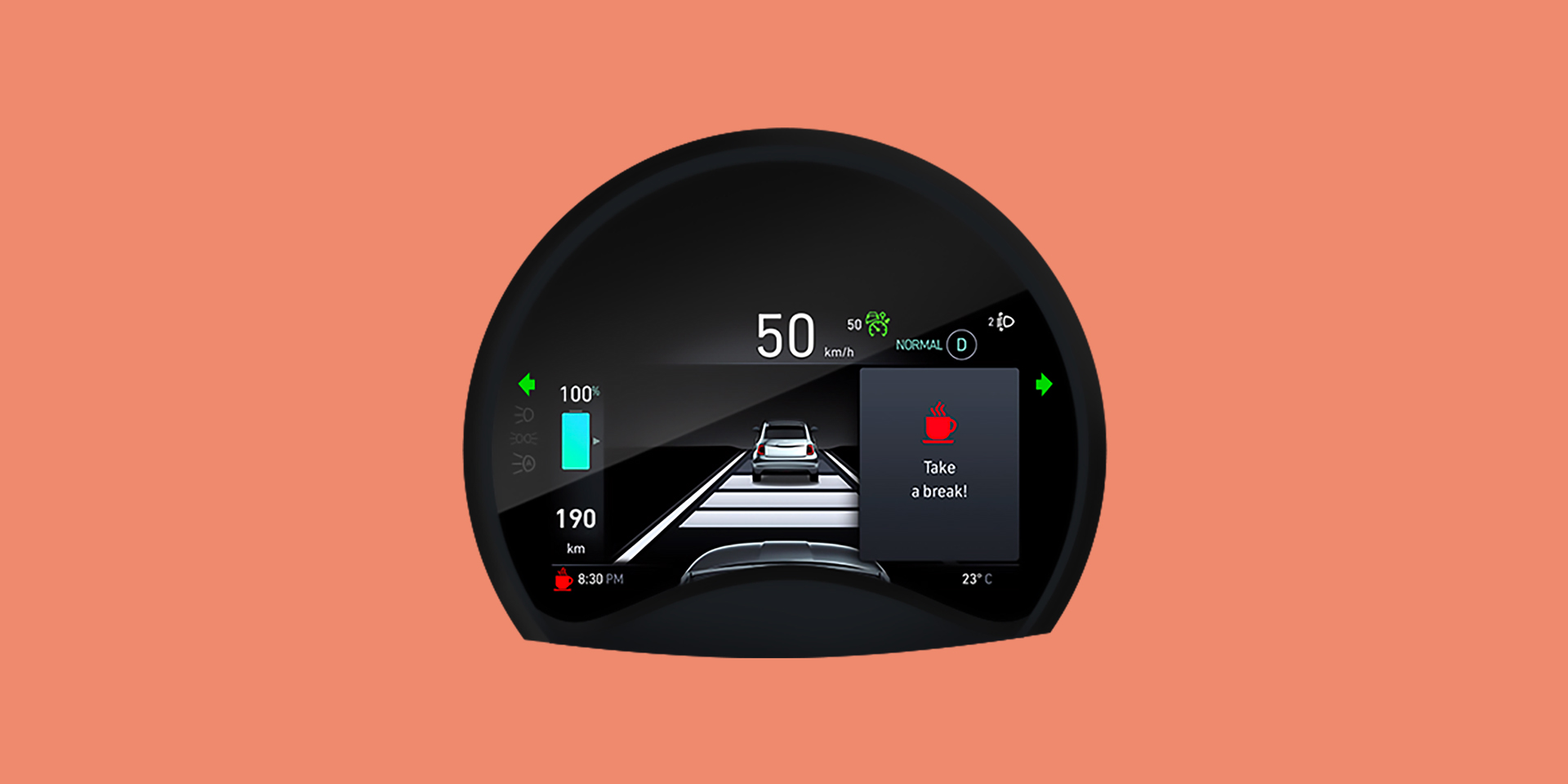 Tous les usagers de la route sont plus en sécurité. Fiat 500e freine automatiquement pour éviter ou limiter les collisions avec le véhicule précédent, un piéton ou un cycliste, à une vitesse maximale de 130 km/h. En cas de danger, la voiture alerte le conducteur par un signal sonore et visuel. S’il ne réagit pas, le système freine la voiture pour éviter ou atténuer le choc.