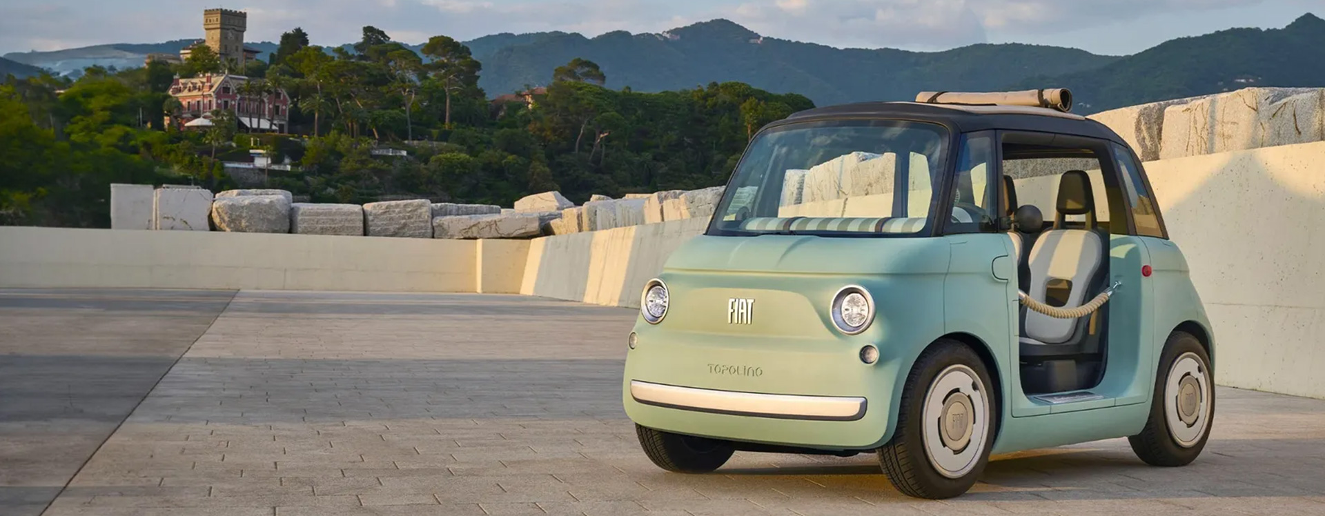Le nouveau Topolino est disponible en deux versions pour satisfaire tous vos désirs : la Berlina, avec son toit panoramique très lumineux, ou la Dolcevita, avec une touche vintage grâce à ses portes à cordon et à son toit ouvrant en tissu.