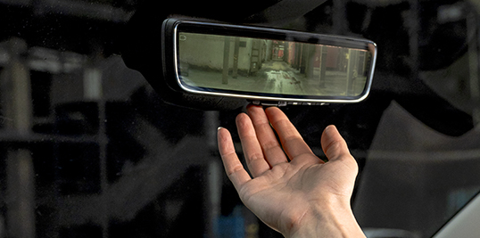 Manœuvrez votre E-Doblò en toute sécurité : Grâce à deux caméras, l’une sous le rétroviseur droit et l’autre au-dessus des portes arrière, affichent sur le rétroviseur numérique 5'' 3 vues différentes pour vous permettre d'effectuer toute manœuvre en toute sécurité.