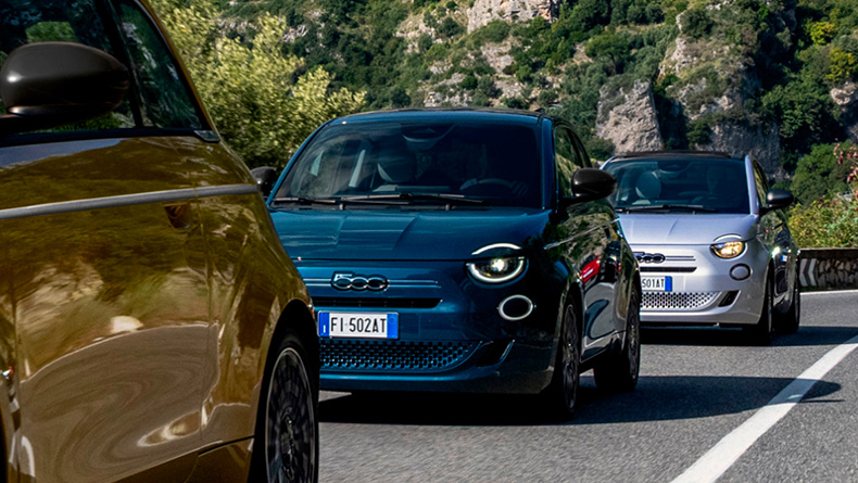 Fari Full LED e calotte specchietti nero lucido mettono in risalto lo stile distintivo di FIAT 500 Ibrida La Prima.