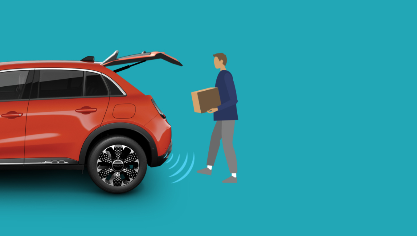 Una vera innovazione in casa FIAT. Ora puoi aprire e chiudere il portellone della tua nuova 600 con un semplice movimento del piede.